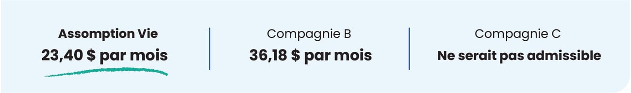 Grâce à Protection Platine Temporaire, il a obtenu une couverture immédiate avec émission simplifiée : une police temporaire de 200 000 $ sur 20 ans pour seulement 23,40 $ par mois. |